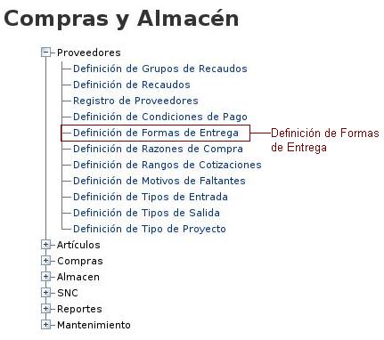 Proceso en el que se define las distintas Formas de Entrega que puede establecer un proveedor, éstas pueden ser Inmediata, a 30 días. etc.