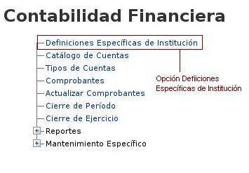 • Por último seleccione la opción Definiciones Específicas de Institución