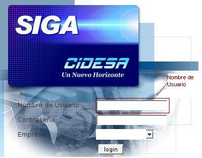 Si el usuario ingresado es válido dentro de la Base de Datos del sistema automáticamente podrá visualizar el Menú Principal de SIGA, de lo contrario, si el Nombre de usuario ó Contraseña es inválido el sistema emite un mensaje de seguridad.
